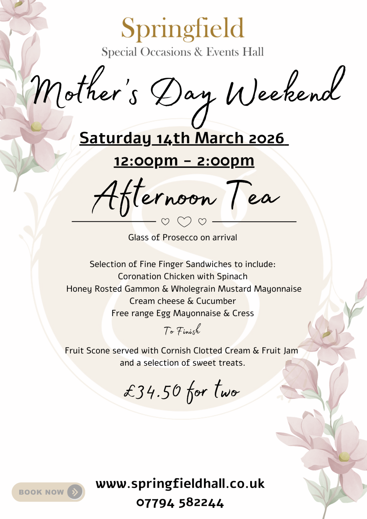 Bookings Only - Book via the - BOOK NOW Tab